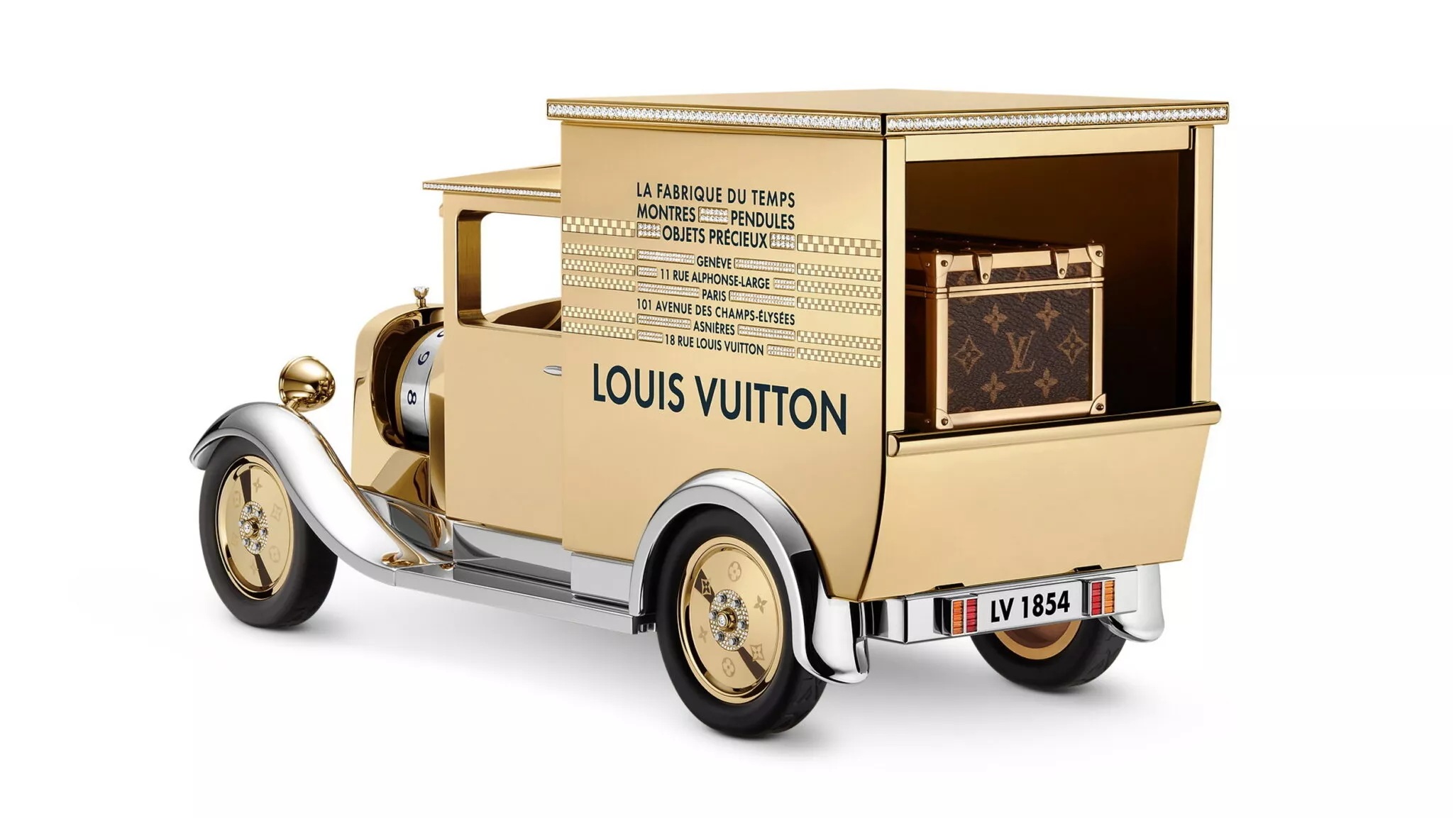 Всего выпустят всего 15 часов Louis Vuitton Camionnette Edition Limitee. Также предлагается более дешевая версия за 68 000 евро без золота и бриллиантов — она не будет лимитированной.