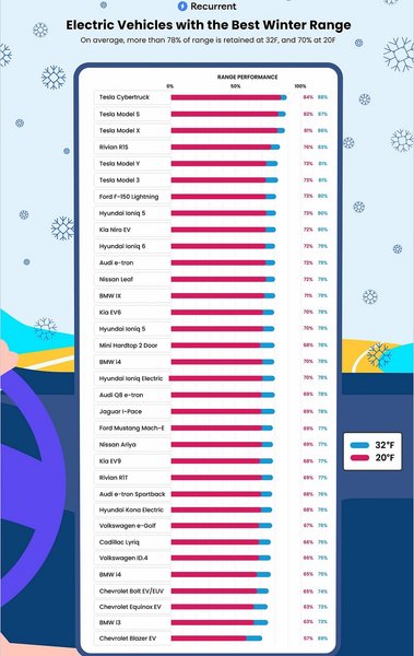 Не секрет, что запас хода электромобилей в мороз существенно сокращается. Эксперты сайта Recurrent решили проверить, насколько он снижается.