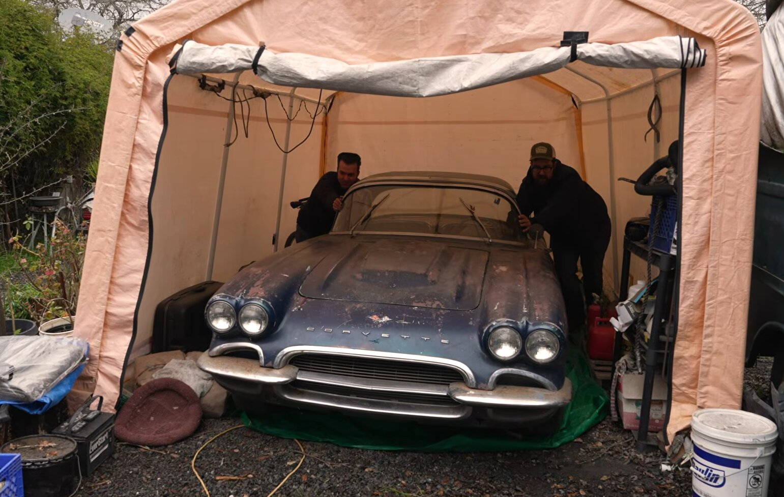 Классический Chevrolet Corvette 60-х поехал после 30 лет простоя на улице в палатке (видео)