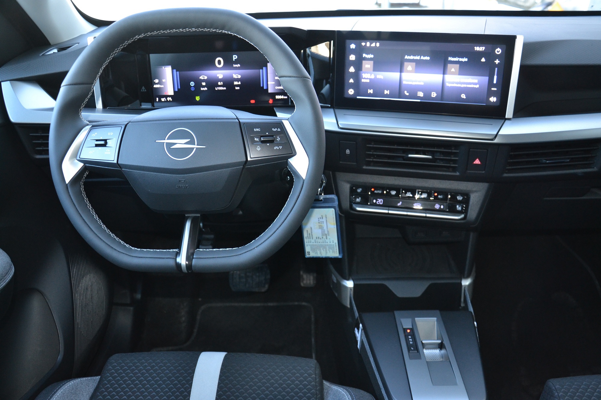 Заглянем внутрь. В интерьере Frontera преобладает знакомый стиль современных Opel с рублеными поверхностями, скошенным снизу трехспицевым рулем и миниатюрным джойстиком КПП.