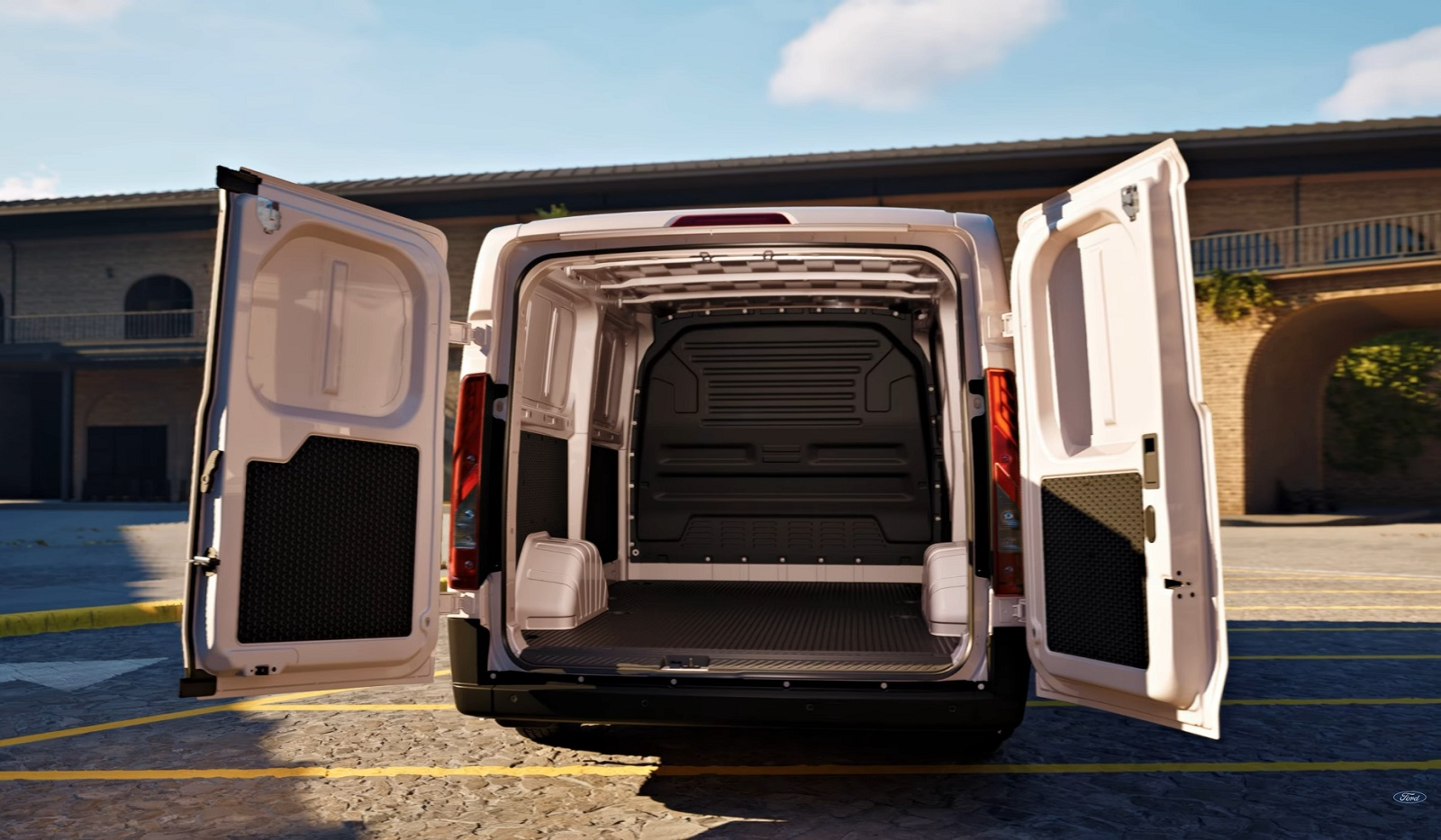 Комплектация Ford Transit City включает два экрана на передней панели, бесключевой доступ, кондиционер, подогрев сидений, парктроник, камеру, адаптивный круиз-контроль и систему автоматического торможения.