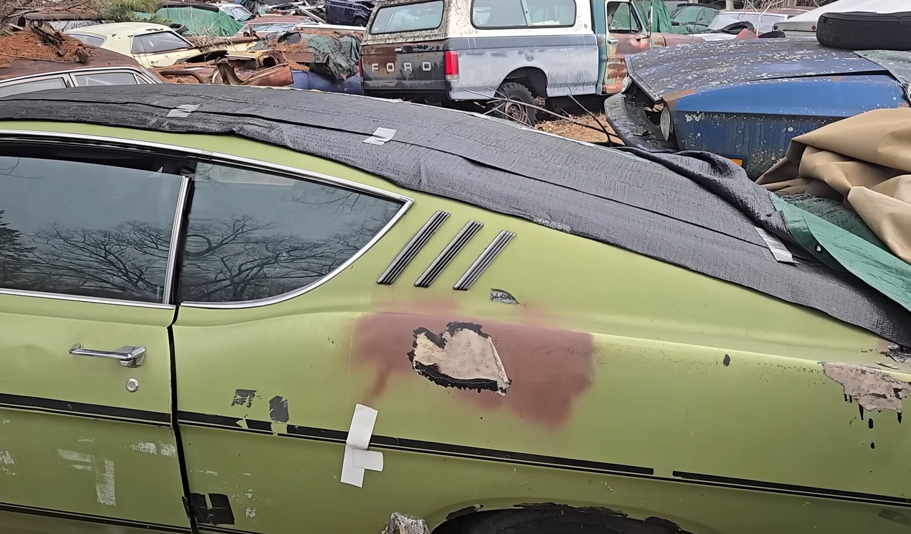 Купе Ford Torino Cobra ржавеет под открытым небом на свалке. О находке рассказал в видео на Youtube блогер Стив Маньянте.