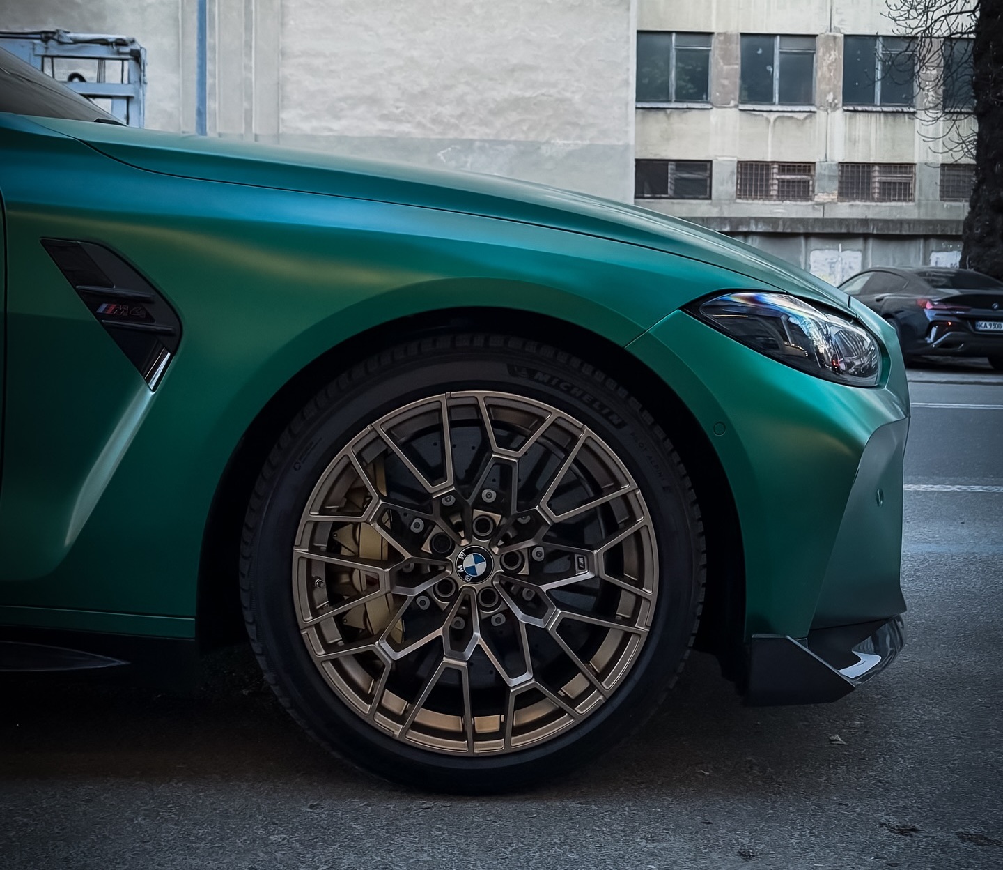 Отличить новый BMW M4 CS можно по особым колесным дискам диаметром 19 дюймов спереди и 20 дюймов сзади. Конкретно это авто также отличается матовой зеленой окраской.
