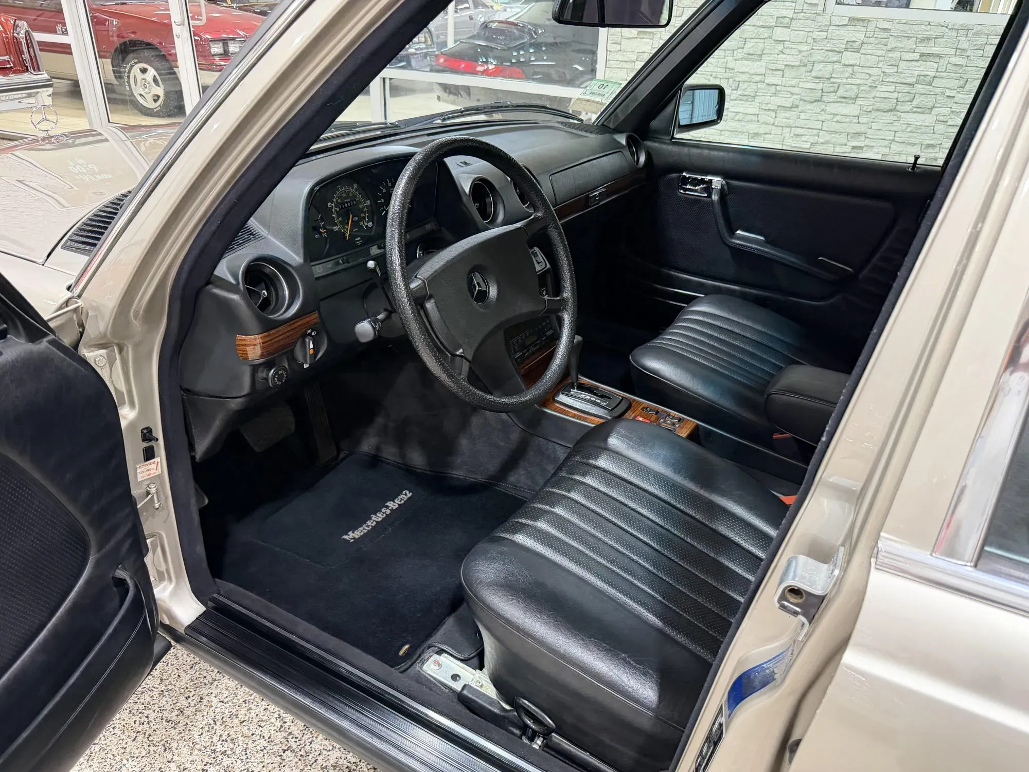 Комплектация Mercedes W123 включает отделку деревом, 14-дюймовые литые диски, люк, климат-контроль, круиз-контроль и кассетную магнитолу Becker Grand Prix.