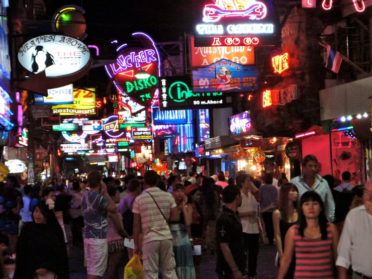 Самое популярное место в Паттайе и визитка города — Walking Street. На этой улице знакомятся, ищут себе пары и эротические приключения на вечер. Здесь сосредоточено огромное количество стрип-шоу, салонов эротического массажа и "краткосрочных" отелей. Даже просто проходя мимо многочисленных кафешек, слышишь мяукающие заманивания миловидных таек, дежурящих у входа и не пропускающих ни одного туриста. Тайский язык вообще благозвучный: речь напоминает мяуканье или мурлыканье и ласково щекочет слух.