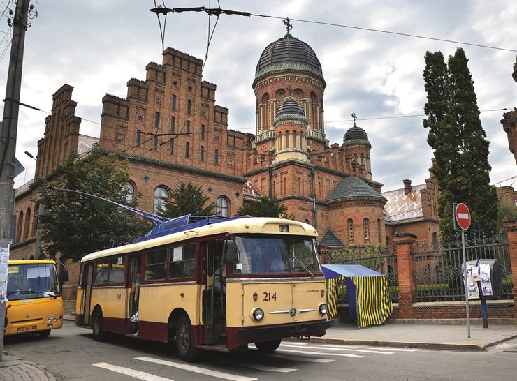 Знакомство с городом начнем с вокзала — нарядного здания с полуголой богиней-вестницей Иридой на фасаде. Если есть время, стоит присмотреться к орнаментам, которыми богато украшены интерьеры залов. Теперь можно и в центр. Трамваи в Черновцах уже не ходят — о них напоминает лишь вагончик-памятник в сквере на улице Гагарина в нескольких кварталах к западу от вокзала. Зато до сих пор встречаются раритетные троллейбусы Skoda-9Tr, с которыми Киев простился еще в начале 90-х.