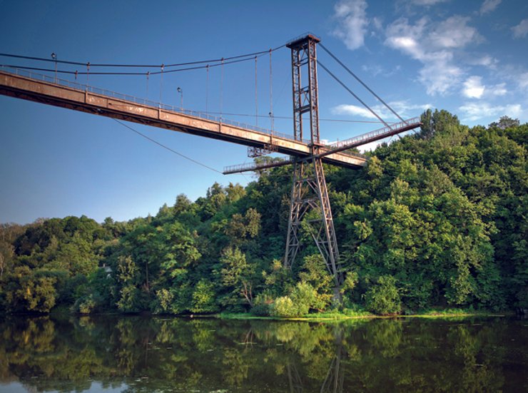 Мост в никуда. Большинство прохожих, вших на подвесной мост в Житомире, доходят лишь до его середины. Дальше идти попросту некуда: на другом берегу Тетерева находится только житомирский пригород Заречаны, да и тот в километре от моста. По изначальному плану, принятому в 1979 году, на правом берегу реки должна была разместиться вторая очередь парка им. Гагарина, где кроме аллей и фонтанов планировалось построить лыжный спуск с подъемником. Но уже в начале 80-х проект отложили в долгий ящик, а вскоре и вообще забыли о нем. От грандиозного замысла остался лишь недостроенный лыжный спуск в трехстах метрах правее от моста.
