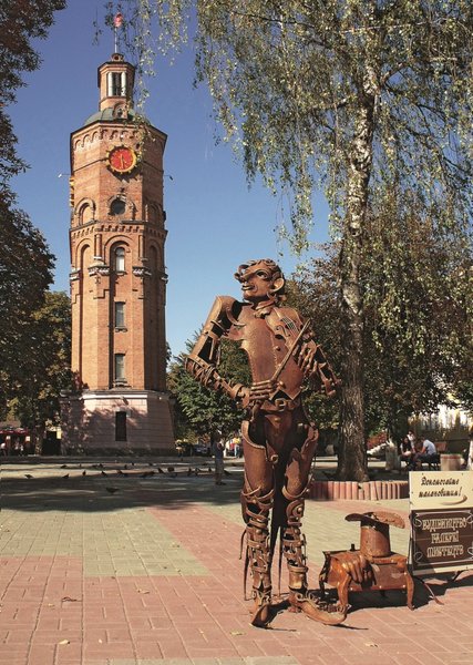Башня начала XX века, мерно отбивающая ритм своими часами, — главный символ Винницы. Она стоит в сквере Козицкого, рядом с площадью Независимости, на углу ул. Козицкого и Грушевского. Также в сквере имеется несколько скульптур. Городской архитектор Григорий Артынов, присев на лавочку, любуется одним из своих творений — башней. А кованые скульптуры скрипача, саксофониста и поэта призывают собирать средства на развитие искусства.