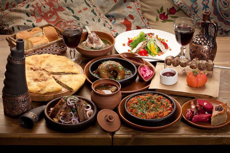 Если вы попали в гости на грузинское застолье, следует знать, что тамада за столом — один — хозяин. Задание гостей — успевать пить и есть. Иногда оно не такое уж простое — чего стоят мясные грузинские блюда, все хочется попробовать. Учитывая, что обычный гостеприимный обед может длиться два-три часа, времени хватит. А хватит ли сил?