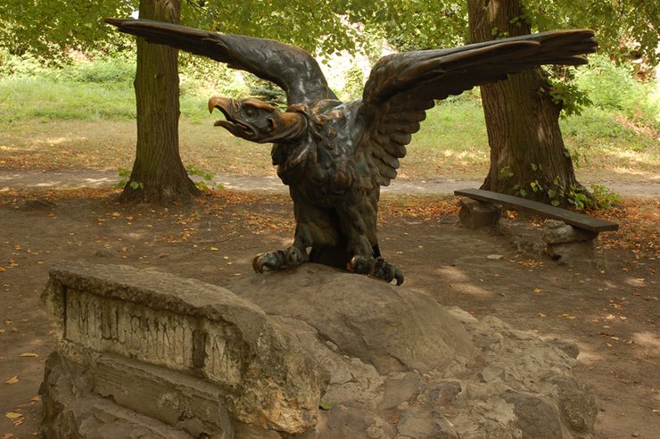 Замок Паланок на одиноком погасшем вулкане сигнализирует о приближении к Мукачево. Роскошную твердыню охраняет бронзовый турул — тотемная птица венгров. Эти бронзовые птицы в последнее время активно "размножаются" в Закарпатье. В центре Мукачево на бирюзовых слоновьих ногах поднимается модернистская ратуша (1904 г.), а напротив нее — здание театра (1896 г.). Закарпатский драматический русский театр появился тут неспроста: в ХІХ веке в Закарпатье были сильны русофильские настроения, ими и сейчас не прочь злоупотребить некоторые политики.