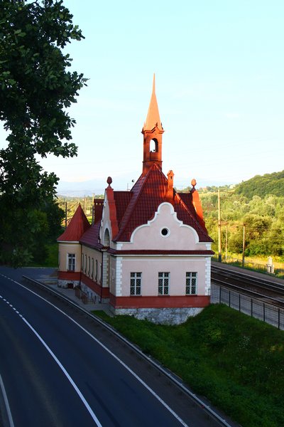 От Мукачева движемся дорогой на Сваляву, чтобы вскоре остановиться у сказочного домика — железнодорожной станции Карпаты. Нам — наверх, в зелень парка за оградой. Парк засажен экзотами: здесь растет самшит, катальпа, сакура, розовый бук. Недолгий подъем выведет к нарядному дворцу Шенборнов с высокой часовой башней, гербами с коронованными львами и высокой черепичной крышей, утыканной дымоходами.