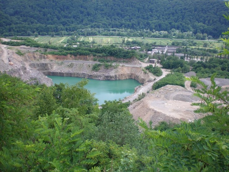 Огромный карьер по добыче строительного камня расположен напротив Невицкого замка, на другом берегу Ужа.