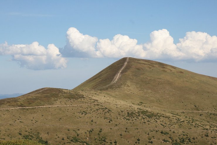 Дальше путь идет на восток по хребту. Тут сложно сбиться — дорогу постоянно указывают пограничные столбики. Впрочем, линия границы точно не обозначена, поэтому по пути можно случайно посетить Объединенную Европу. Главное — в районе столбика №373 не пропустить спуск с хребта: тут граница поворачивает на север, а высокие горы уходят в Румынию. Но здесь ориентиром станет дорога и просека вдоль границы. По этой линии часто гоняют на "уазиках" пограничники: подвезти не предложат, а вот документы проверят гарантированно.