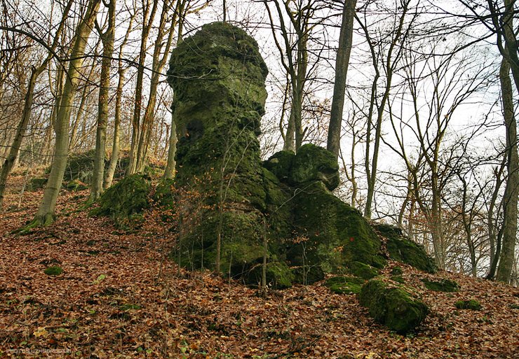 Жерловую часть вулкана, образованную туфовой лавой, в простонародье называют Скалкой. Скалы возвышаются прямо над рекой Уж, рядом — заброшенный студенческий лагерь.
