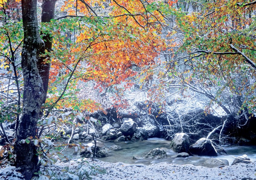 В конце октября в этом месте можно застать одновременно желтые, зеленые, красные листья и снег. Каньон сам по себе прекрасен для фото, а осенью это просто кладезь для красивых фотографий.