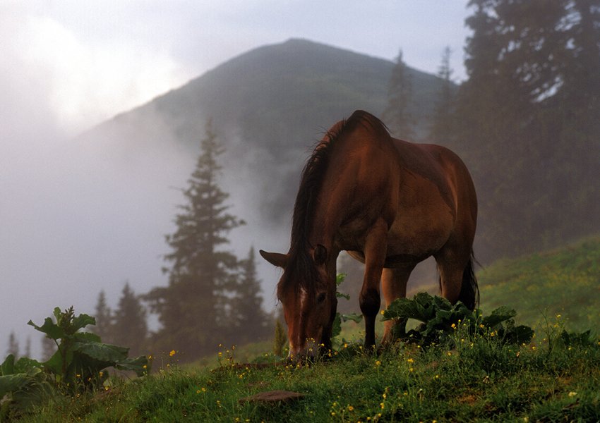 На природе сюжетов в миллион раз больше, чем в городе, намного больше красок. Тут и густые утренние сентябрьские туманы, в которых неожиданно можешь наткнуться на стадо пасущихся лошадей, полотна из листвы всевозможных оттенков, которые отражаются в холодной синеве рек и озер, первый снег в горах поздней осенью.