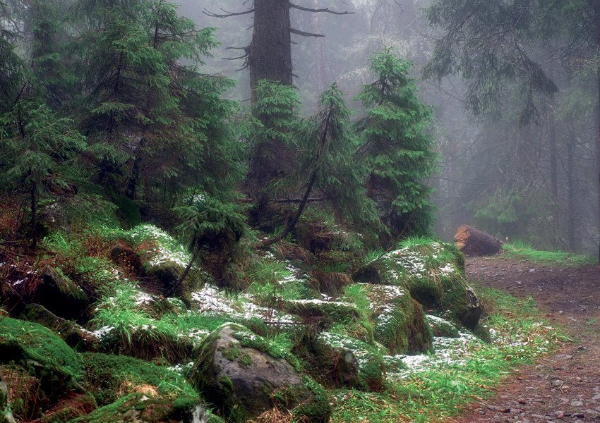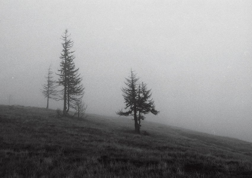 Мое любимое место для осенних фотографий — Карпаты. Мы с друзьями часто ходим в походы, и я всегда беру свою, как я ее называю, походную камеру: обязательно пленочную, ну а пленка только черно-белая. Тогда Карпаты становятся мистичными, они похожи на пейзажи из "Твин Пикс" Дэвида Линча: глубокий туман, сосны, роса.