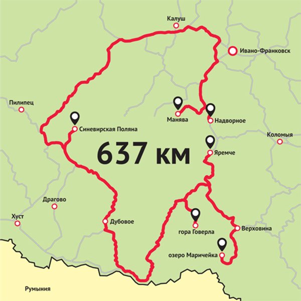 Тур по местам, где родились самые знаменитые карпатские легенды, на карте смотрится почти как замкнутый круг длиной более 600 км.