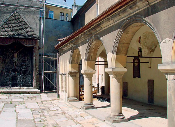 В 2013 году здесь обнаружили руины средневекового храма, который, возможно, был тем самым костелом Святого Станислава, в котором похоронен итальянский купец Паоло Микелини, погибший, согласно легенде, от чумы, которой заразился во время эпидемии 1594 года вслед за своей возлюбленной, львовянкой Пелагией. Ранее считалось, что костел немного южнее, между улицами Тиктора и Фурманской. А Пелагия была похоронена в церкви Благовещения, также располагавшейся на нынешней улице Городоцкой, в районе дома номер 30.