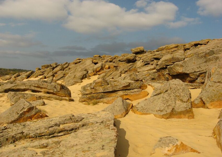 Эти расположенные в окрестностях поселка Мирное скальные нагромождения достигают высоты 12 м, занимают площадь 3 га и состоят почти из 3000 камней. На многих из них высечены уникальные наскальные изображения — петроглифы.