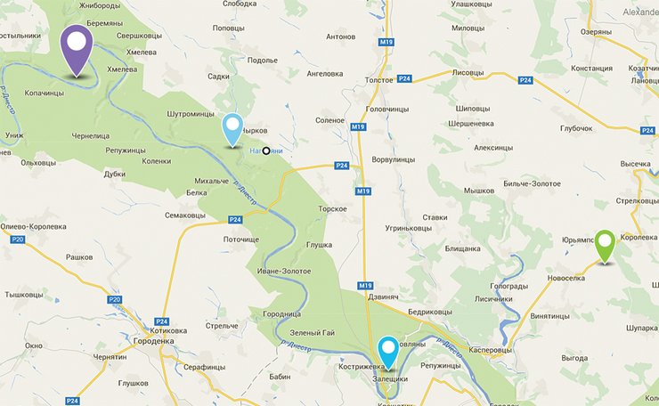 Вариант №1. Дорога от Киева до Залещиков довольно неплохая, если ехать через Житомир — Хмельник — Чортков (М06 + М21 + Р31 + М12 + Н03 + Р50 + М19, протяженность около 515 км). Самые плохие участки — от Ярмолинцев до Городка и ближе к Залещикам. В селах, выходящих к Днестру, ситуация зачастую сложнее.
