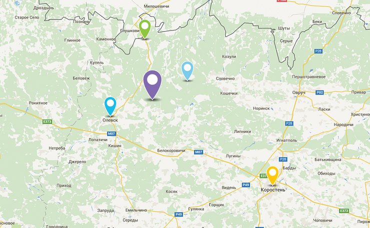 Вариант №2. Из Киева электричкой до Коростеня. Далее — автобусом или дизель-поездом до Олевска, оттуда — маршруткой до Рудни-Замысловецкой.
