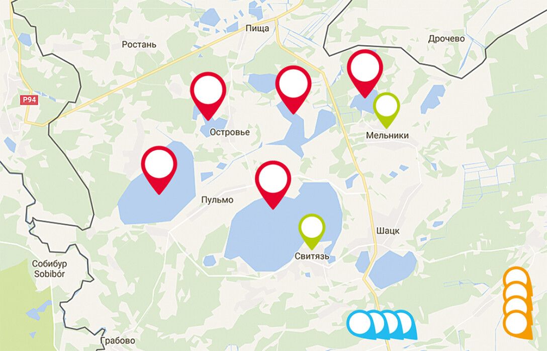 Из Киева по Варшавской трассе (E373/M07) до города Любомль, далее повернуть направо и ехать до Шацка по дороге T0312. Качество дорожного покрытия почти на всей протяженности пути хорошее, расстояние до Шацка ~530 км.