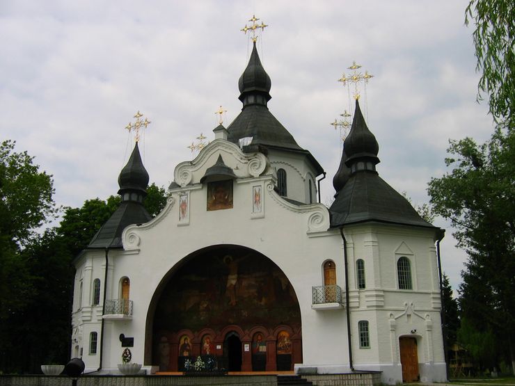 Подземный переход ведет к второму храму заповедника. Величественная Георгиевская церковь — один из лучших примеров модерна в украинской сакральной архитектуре. В этих стенах сразу три святыни. Главная — Георгиевская. На втором этаже — храм Бориса и Глеба. Под землей — церковь Параскевы Пятницы. Проект в 1910 году создал студент-архитектор Владимир Максимов. Освятили церковь 2 июня 1914-го. Уже в те годы Казацкие могилы собирали тысячи паломников. Архитектор понимал, что ни одно здание не выдержит напора таких толп, и вынес иконостас на внешнюю стену церкви. Фронтон украшен "Голгофой", шедевром Ивана Ижакевича. Сейчас на Казацких могилах действует не только музей, но и мужской Георгиевский монастырь (УПЦ КП).