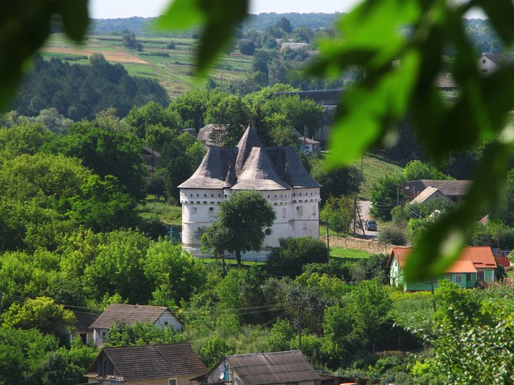 Как добраться: ехать к северу от Бучача по объездной (вначале по Т2001, потом поворот на запад на Н18). Свернуть направо на первом повороте после моста через реку Стрыпа. Комплекс хорошо просматривается с объездной дороги.