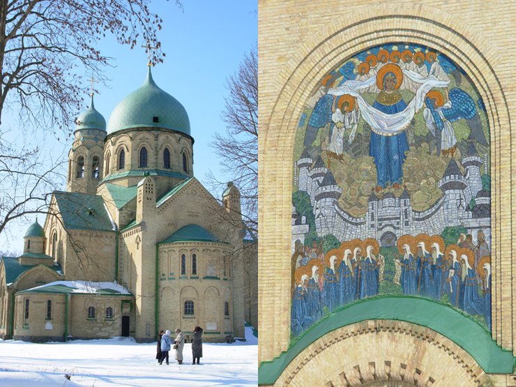 Начало XX века было эпохой модерна в архитектуре. Этот чувственный стиль нечасто касался православных храмов, но церковь Покрова Пресвятой Богородицы в селе Пархомовка — приятное исключение. Мозаики в интерьере собраны по эскизам Николая Рериха — великий художник был другом промышленников Голубевых, меценатов храма.