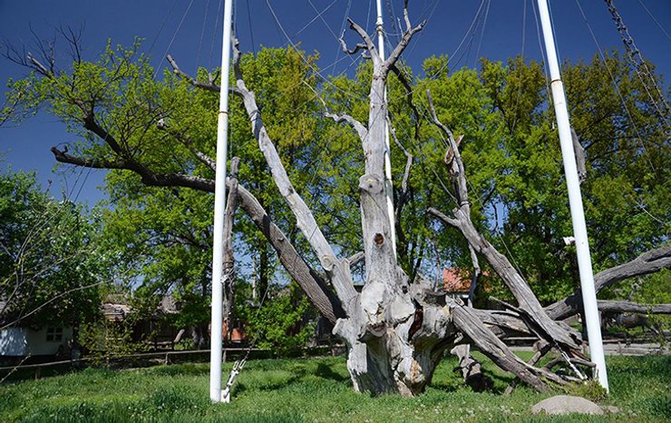 Легенды рассказывают, что под этим дубом запорожцы писали письмо турецкому султану, в его тени отдыхал Богдан Хмельницкий, дуб почитают меннониты, а еще под ним Шевченко читал свою поэму "Катерина". Сейчас почти полностью засохшему великану 700 лет. По результатам всеукраинского конкурса "Национальное дерево Украины" запорожский дуб признан самым историческим деревом страны.