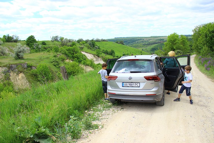 Но пора добраться и до короля здешних рек — Днестра. Для этого едем в соседнее с Великой Слободкой село Яруга. Ну как соседнее: по прямой сюда рукой подать, но чтобы объехать изрезанную каньонами береговую линию, приходится долго трястись по разбитым подольским дорогам. Впрочем, трястись — это не про Tiguan: машина "проглатывает" выбоины, позволяя нашей младшей дочери не отвлекаться от сна в детском кресле.