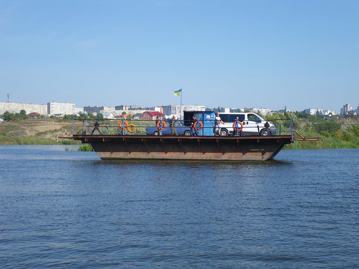 В городе атомной энергетики Южноукраинске автомобильный паром тянут вручную сами водители