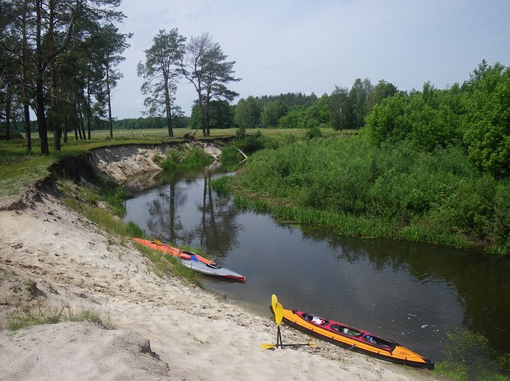 Глухов с его историческими памятниками находится справа от трассы. Но наша цель — реки, и мы сворачиваем налево, в соседний райцентр Ямполь. Река Ивотка мало известна даже опытным байдарочникам. На ней почти нет сел, а потому ее живописные берега безлюдны. Если машина позволяет, проедьте по грунтовкам до моста-плотины перед селом Папирня. Чуть ниже этого моста есть очень фотогеничная сосновая роща, где можно искупаться и стать с палаткой.