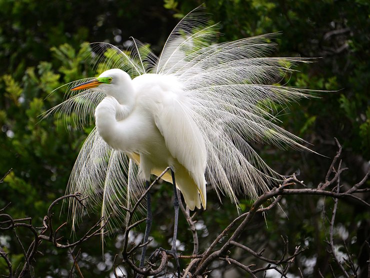 Большая белая цапля еще недавно была желанной мишенью для охотников. Длинные перья (игретки), которые появляются в гнездовой период, служили украшением дамских шляпок. Сейчас птица находится под охраной и встречается редко.