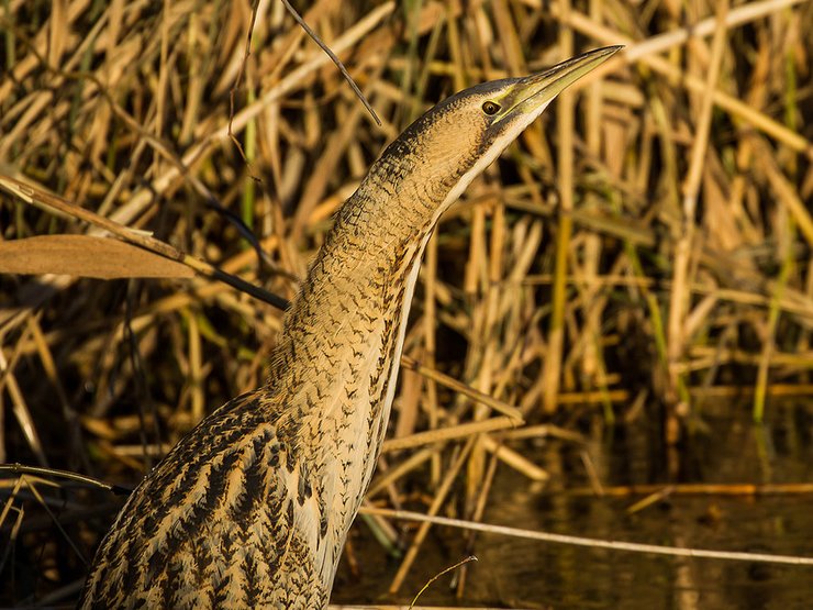 Большую выпь увидеть практически невозможно благодаря ее защитной окраске. Зато можно услышать пение, похожее на мычание быка и слышное на километры.