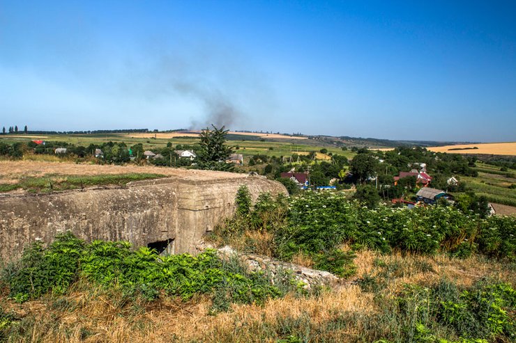 А вот ближайшие пограничные реликвии находятся в соседнем поселке Жванец. От устья Збруча туда около 3 км — сущая безделица, учитывая, что приграничная полоса составляла 20 км. В поселке можно увидеть доты "Линии Сталина". Один, пулеметный, расположен на территории местного замка и развернут на "польскую сторону".