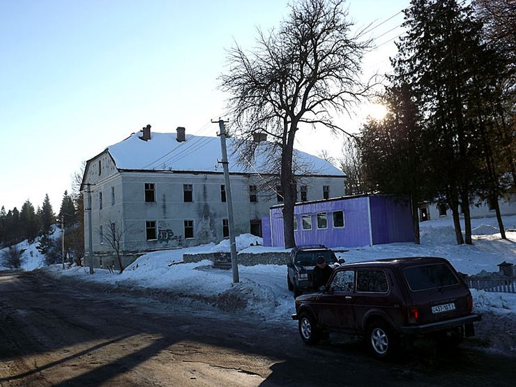 Рядом с древними вратами Сатанова стоит старое двухэтажное здание. Это тоже след границы. Построили его в начале ХХ в. для царской таможни. В советские времена здесь находилась пограничная комендатура.