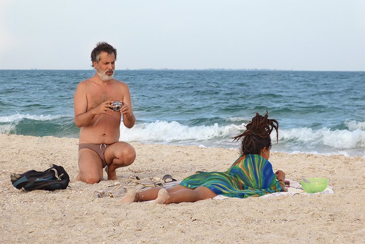 Поэтому основная масса отдыхающих на Джарылгаче — это приезжие-однодневки из Скадовска. Централизованный пляж расположен со стороны открытого моря, он предлагает шезлонги и искусственную тень. Дальше в сторону ближайшего края острова в тени диких маслин много палаток. Здесь уже царит свобода: народ собирает походно-немытые волосы в косички-дреды и играет на барабанах.
