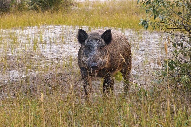 На закате около места своей стоянки, в зарослях тростника, увидел двух пятнистых самцов лани, в том числе альбиноса. Здесь же меня ждала и вторая встреча с хозяевами острова: приличного размера дикий кабан поначалу привел меня в некоторое замешательство, хотя я и читал до поездки об общительных животных острова.