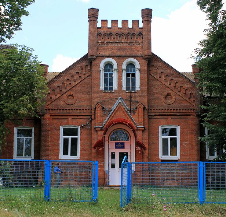 Сахарозаводчик Леопольд Кениг был немцем, и его усадьба в Шаровке — уголок Германии в Украине. Не только белоснежный дворец с ажурными башенками, но даже маленькие хозяйственные постройки выдержаны в неоготическом стиле.