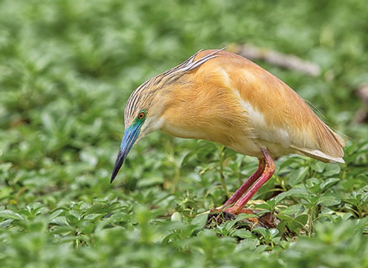 Это очень редкий вид пернатых, включенный в Красную книгу Украины, в плавнях Днепра их водится всего 300–310 пар. Цапля отличается не­обычной окраской: вся желто-охристого цвета, при этом брюхо, хвост и крылья белые, лапы красные, клюв зеленовато-желтый, а его конец — черный. Голос желтой цапли похож на голос серой вороны.