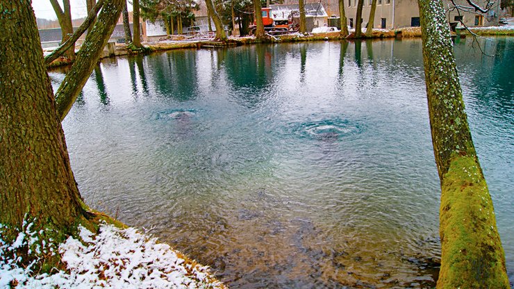 Подземные воды Оконских источников с высокой мощностью бьют на поверхность и образуют два фонтана на озере Окнище
