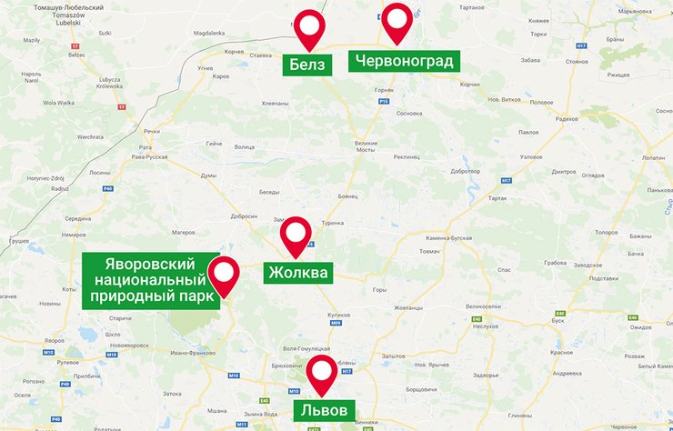 Нужно ехать по маршруту Львов — Жолква — Червоноград — Белз — Жолква — Львов, с заездом в Крехов и Майдан. В целом маршрут составляет 164 км, или более четырех часов пути, а то и больше, с учетом бездорожья у польской границы. Выезжайте из Львова по трассе М09, по ней до Жолквы 32 км, или около 40 минут в пути. Из Жолквы до Червонограда, по Р15 — чуть больше 40 км, на эту дорогу тоже потратите около часа. Из Червонограда до Белза есть дорога Т1404, расстояние — около 20 км, на преодоление которого уйдет около 40 минут. От Белза до села Майдан и Яворовского национального парка два варианта пути — более западный и "убитый", через Угнев и Думы, на который вы потратите около двух часов. Либо можно взять восточнее и через Большие Мосты вернуться до Жолквы, на эту дорогу уйдет чуть больше часа.