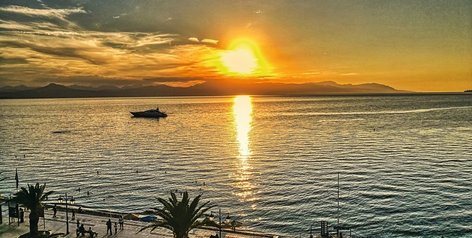 Море. Всегда принято начинать с него, ибо иначе зачем все это — лето, осень, бархатный сезон? Ионическое море здесь приятное. В сентябре воздух +25–27°С, нежарко, а в море нехолодно. Главный козырь — "голубой" флаг на набережной, он уже который год свидетельствует об абсолютной чистоте воды.