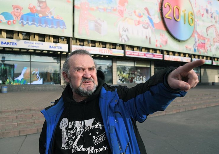 Строитель. Сашко Лирник до того, как стал профессиональным сказочником, работал инженером. "Вот это все я построил", — говорит он, показывая на здания напротив "Детского мира" в киевской Дарнице