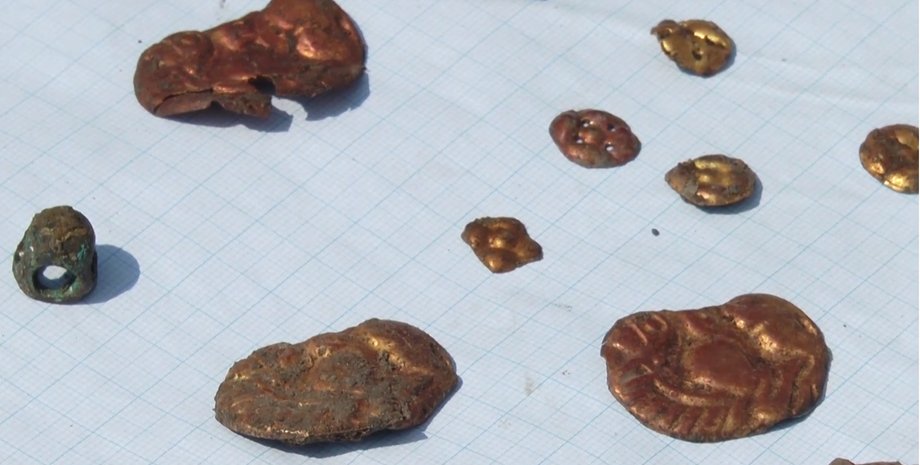 "Я никогда столько не находил золота. Один раз нашел бляшку размером сантиметр на сантиметр, а здесь их несколько десятков", - рассказал старший научный сотрудник музея археологии Харьковского национального университета им. Каразина Станислав Задников.