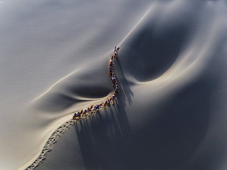 Караван верблюдов в пустыне / Фото: SkyPixel