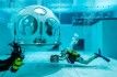 Для того, чтобы попасть за свой столик посетители надевают костюмы для дайвинга и проплывают к сфере, где и происходит сам обед.