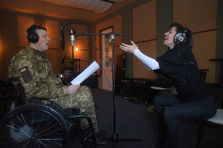 — Вопрос финансирования поначалу был почти неразрешим. Сразу поняла, что проект должен быть гражданской инициативой, без политики и политиков. Обращалась за поддержкой к бизнесменам. Но большинство из них не понимали, зачем нужно вкладывать деньги в песни. В броники и берцы — да, в танки и БТРы – да. Но в песни… Приходилось подолгу объяснять важность проекта, но безрезультатно. Меценатов в Украине явно не хватает. Но зато какие у нас волонтеры! Именно они, простые люди с большими добрыми сердцами, вызвались помочь нашему проекту. Сначала молодая львовская художница Роксолана Йолич подарила проекту десять своих картин, которые мы продали на благотворительном аукционе. Собрали более 40 тысяч гривен! Этого хватило на запись трех песен. Потом певица Анычка Чеберенчик, которая живет в США и уже третий год дает благотворительные концерты, собирая деньги на реабилитацию воинов АТО, рассказала украинцам Америки о нашем проекте. За несколько месяцев Анычка собрала 3 тыс. долларов: большинство тех, кто поддержали наш проект, фактически купили будущий диск.